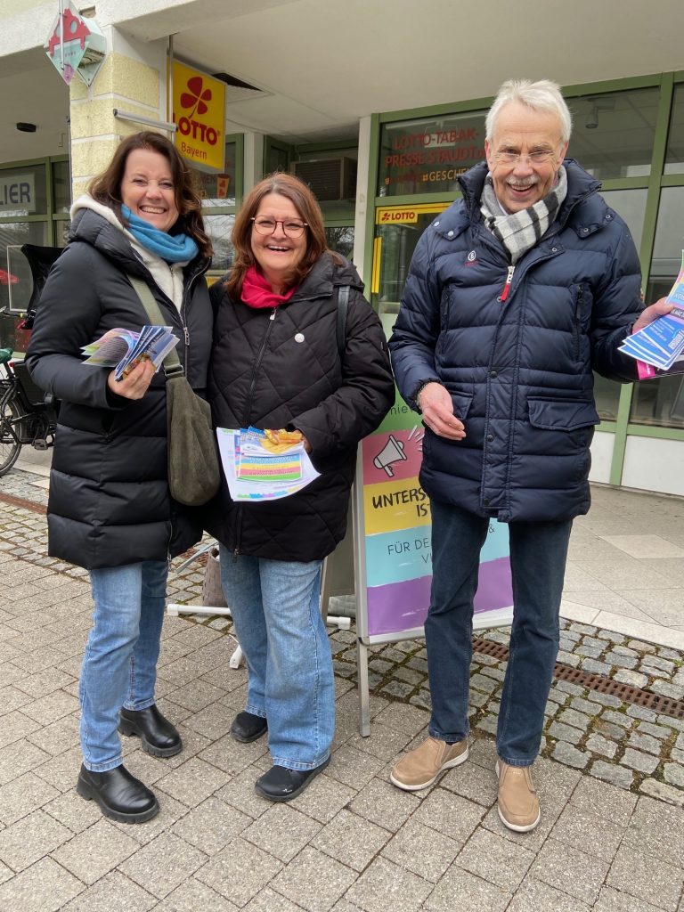 An den Samstagen 07.02., 14.02., 21.02., 28.02. sowie 07.03. wird das Bündnis Unterschleißheim ist bunt e.V. mit einem Stand auf dem Rathausplatz engagieren, um Fragen zur Wahl und dem Wahlsystem zu beantworten und für eine demokratische Wahl zu werben.