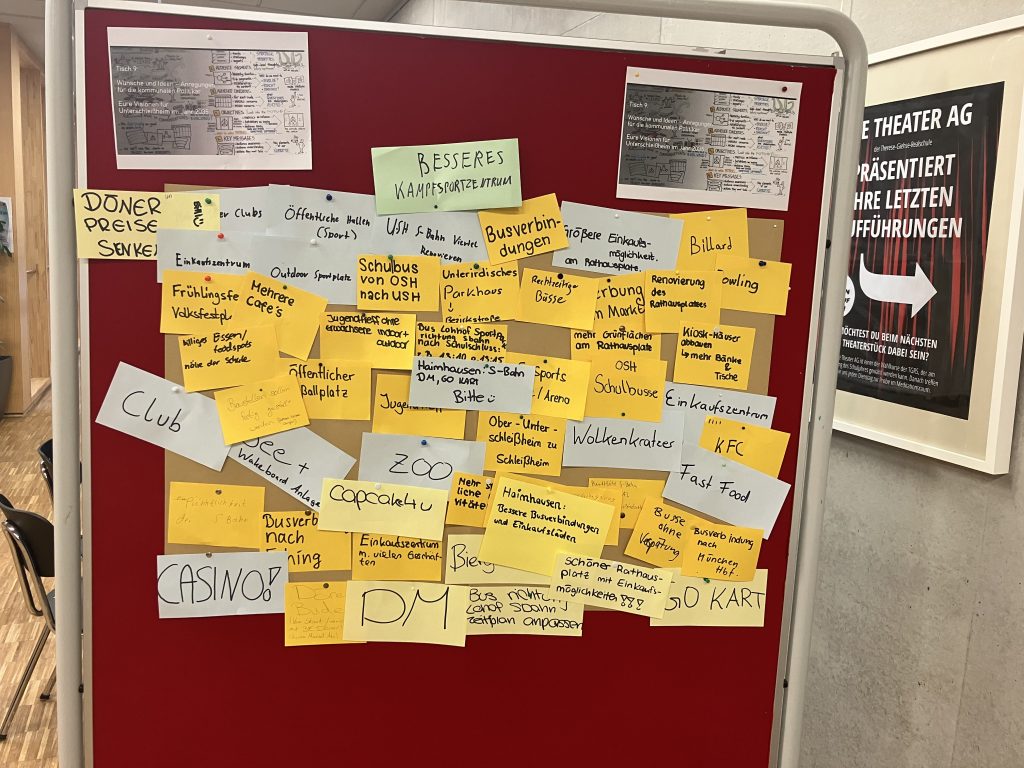 Einige von unseren Mitgliedern stürzten sich mutig in ein World Café, um dort bei Kaffee und Schnittchen wichtige Fäden für unsere Idee von Demokratie und Vielfalt zu spinnen. In der Therese-Giehse-Realschule und der Mittelschule Unterschleißheim haben wir Workshops für die 9. und 10. Klassen begleitet. Die Jugendlichen zeigten uns einmal mehr, dass man für Demokratie keine grauen Haare braucht – frische Ideen und eine gesunde Portion Mut, gepaart mit Skepsis, reichen völlig aus.